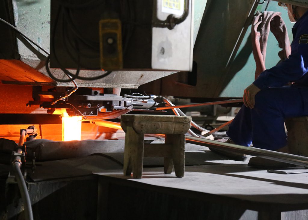为顺应自动化智能生产潮流,紧跟工业4.0时代步伐,今年8、9月份,福建青拓实业股份有限公司精炼部连铸车间陆续迎来了三位自动“钢铁人”,分别是板坯结晶器自动加渣机、自动祛毛刺机、自动板坯喷号机,后期还将试用AOD自动拉渣机。