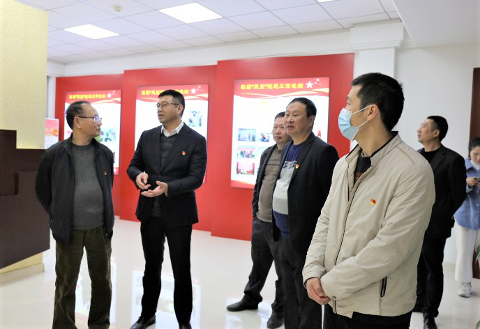 在企业党群展厅,钟盛江汇报了青拓集团党委在党建工作以及党史学习教育方面的工作开展情况。一行人员对青拓集团深入学习贯彻习近平总书记关于发展非公有制经济和加强非公企业党建工作的重要论述,紧跟党组织步伐,坚持党建引领发展给予高度肯定,对“党建联盟”和“五融五促”创新工作模式给予高度评价。