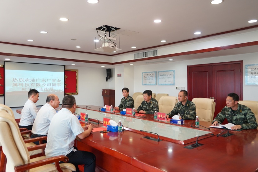 7月29日,在“八一”建军节即将来临之际,广东广青金属科技有限公司党委书记、董事长王磊率慰问团开展了拥军慰问活动,代表公司向武警阳江支队和阳江军分区送去米、油等慰问品,向广大官兵们表达了节日的祝福和问候。