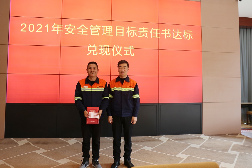 姜海洪为2021年度安全管理目标达标的9个单位进行了颁奖,并与集团直属部门、各子公司签订了2022年安全管理目标责任书。